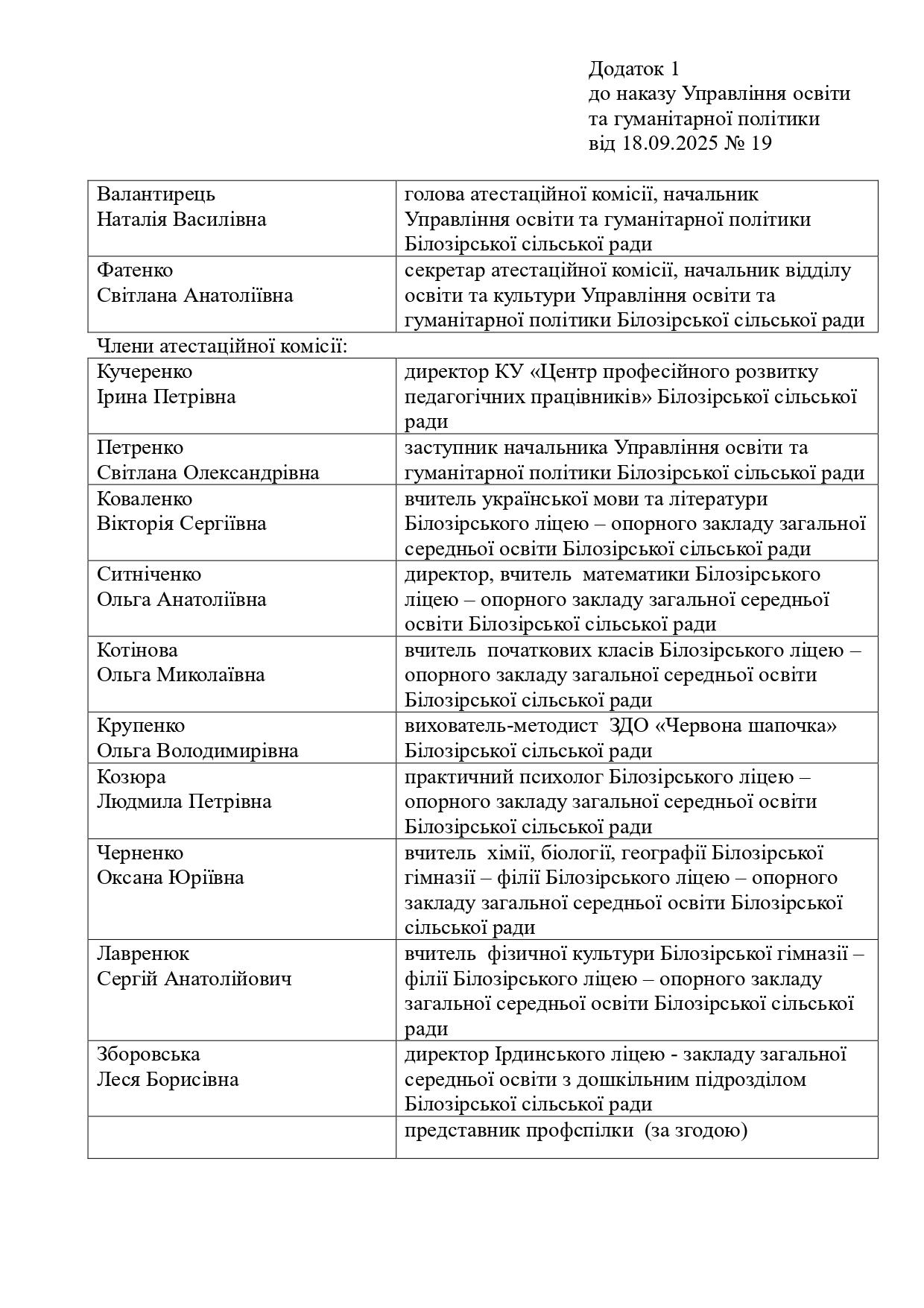 Персональний склад атестаційної комісії