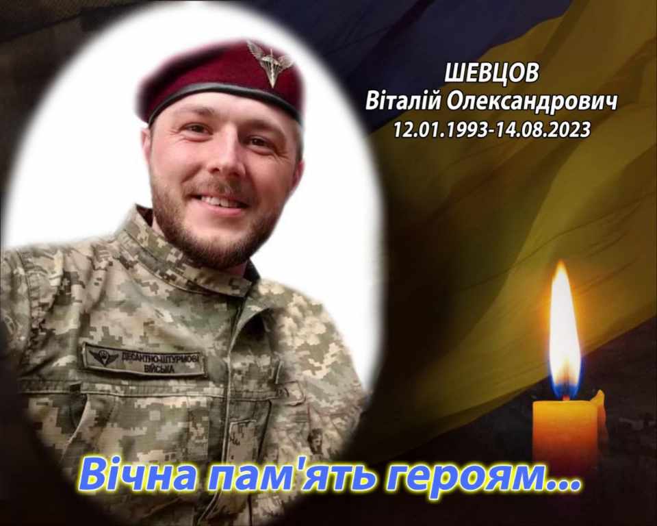 15.10.2025Шевцов Віталій народився 12 січня 1993 року в м.Харків. Коли Віталію було 5 років батьки розлучилися, і мама з сином переїхала до м.Черкаси. Навчався в СШ №20. Дуже любив медицини. Добрий, лагідний, чемний, світлий, з неймовірним почуттям гумору. Легко сходився з людьми. Мав багато друзів. Єдиний син у матері, єдиний внук у бабусі. Він був їх гордістю, надією і опорою. 9 січня 2023року Віталій був мобілізований. Він дуже хотів потрапити в десентно-штурмові війська. Пройшов тестуванні і потрапив. Пройшов навчання у Великобританії, Німеччині-потім в Україні-в Житомирі. Служив солдатом, старшим бойовим медиком 3 десантно-штурмової роти 1 десантно-штурмового батальону в/ч А 2582. 14 серпня 2023 року в районі населеного пункту Вербове, Пологівського району Запоріжської області загинув в бою. Тіло Віталія було евакуйоване лише 26 серпня.